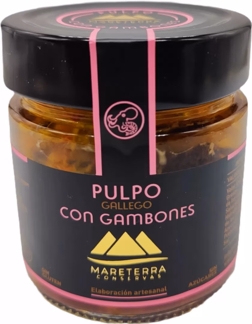 Déjate sorprender por una receta marinera que une sabor, tradición y calidad: el exquisito pulpo con gambones de Mareterra Conservas. Una combinación perfecta que realza la intensidad del pulpo gallego con el delicado toque de los gambones, creando una experiencia única en cada bocado.